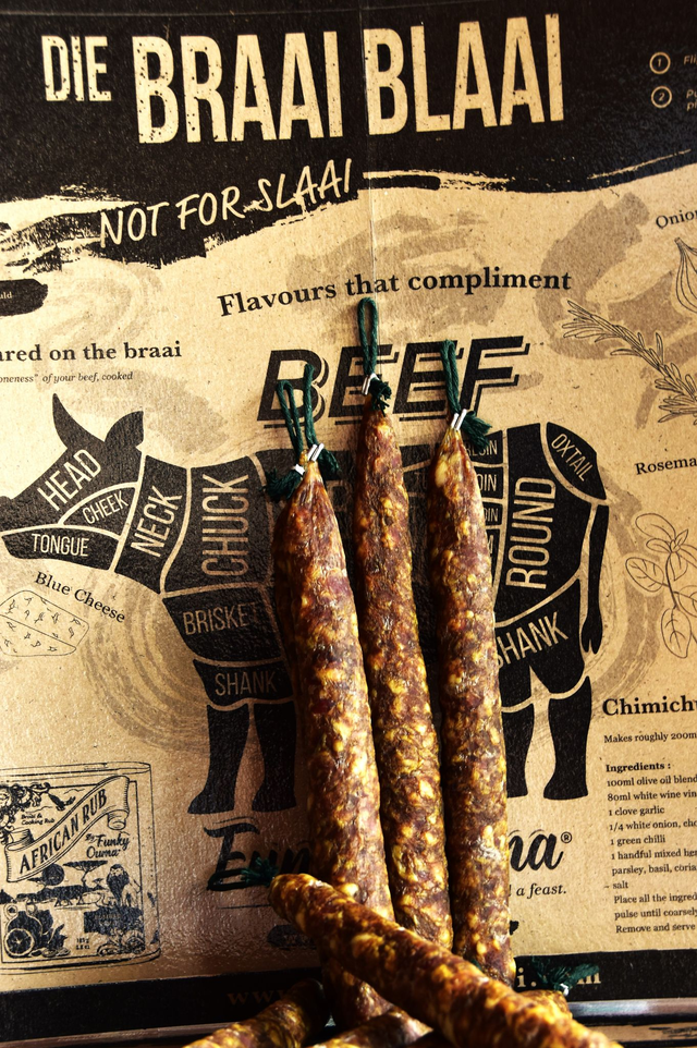Droge worst met een bobotie kruidenmix. Zuid Afrikaans op z'n best!